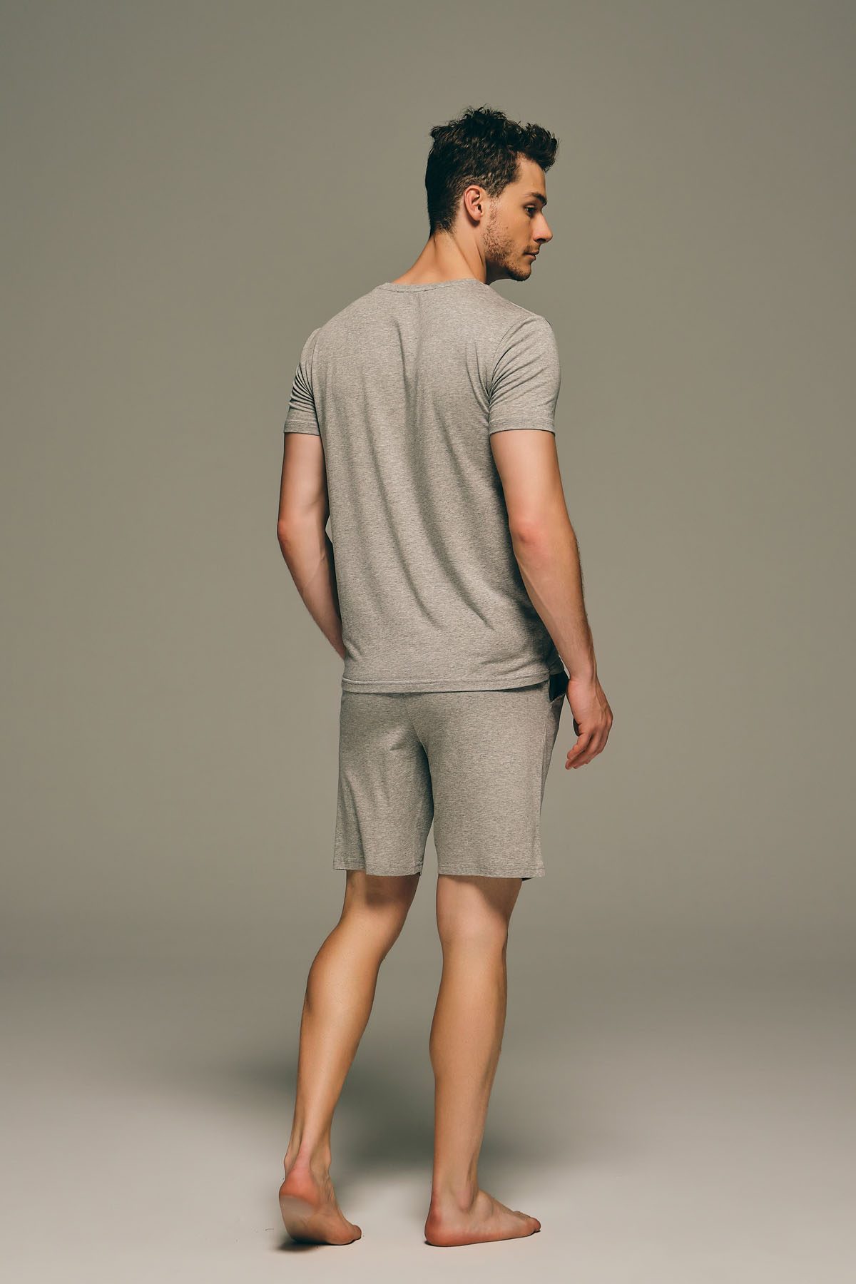 Gri Melanj Erkek Basic Modal V Yaka Kısa Kollu T-shirt - 24501