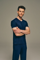 Kısa kollu, V yaka T-shirt.