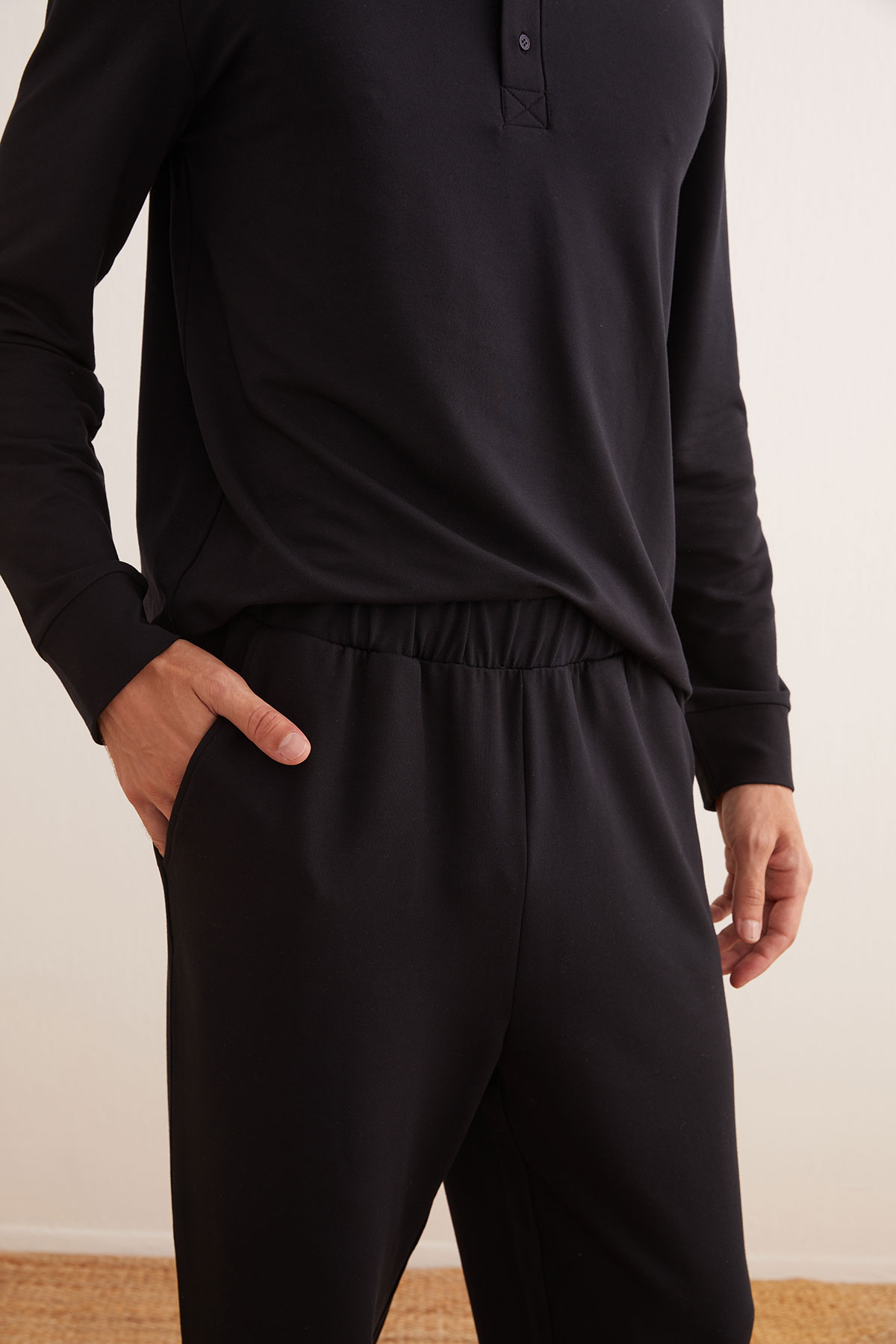 Siyah Erkek İki İplik Modal Uzun Ev Giyim Pantolon - 25428-E91
