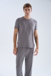 Gri Erkek Modal Bisiklet Yaka Kısa Kollu T-shirt - 70680