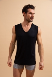 Siyah Erkek Basic Modal V Yaka Kalın Kolsuz Atlet - 65601