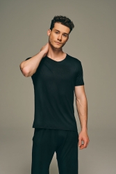 Siyah Erkek Basic Modal V Yaka Kısa Kollu T-shirt - 29957