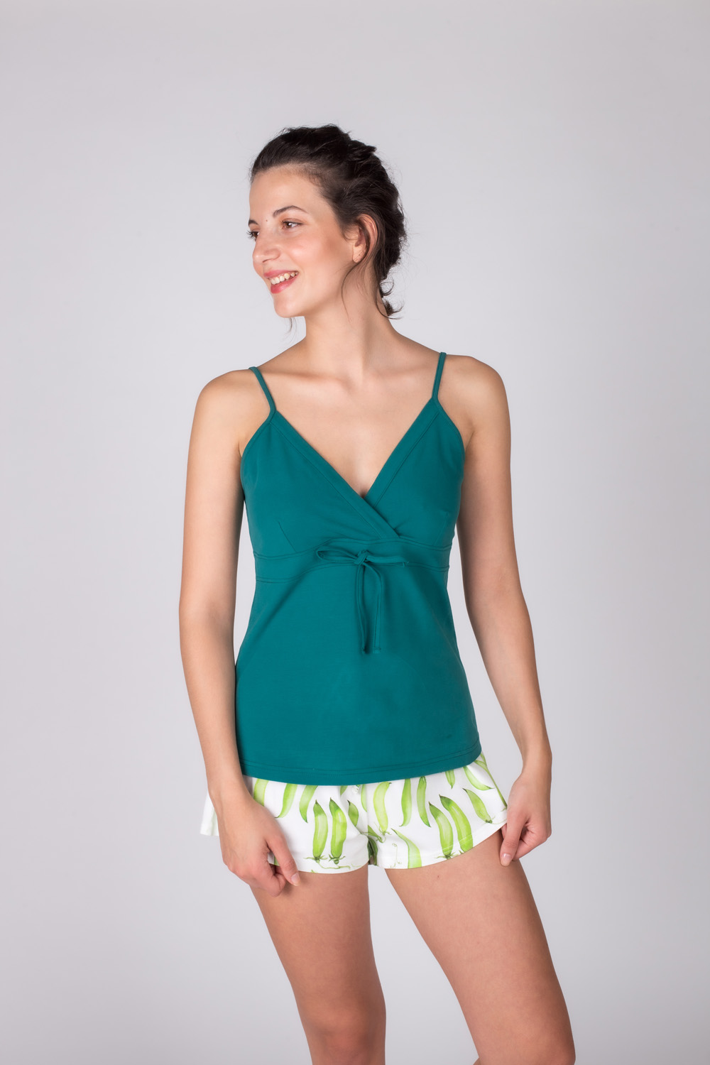 Yeşil Kadın İp Asklı Bağlama Detaylı Atlet - 30543