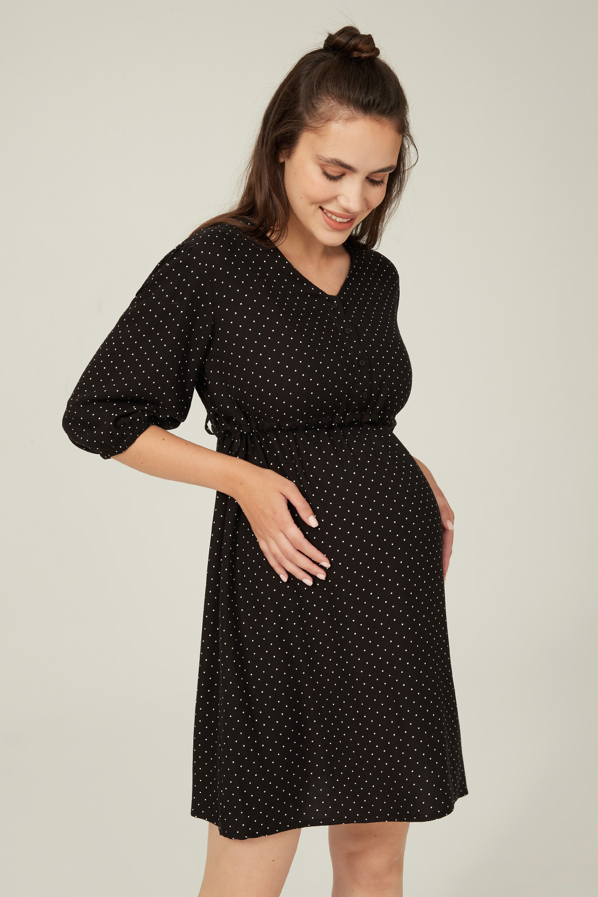 Siyah Puantiyeli Kadın Ayarlanabilir Bel Detaylı Patlı Elbise - 45252
