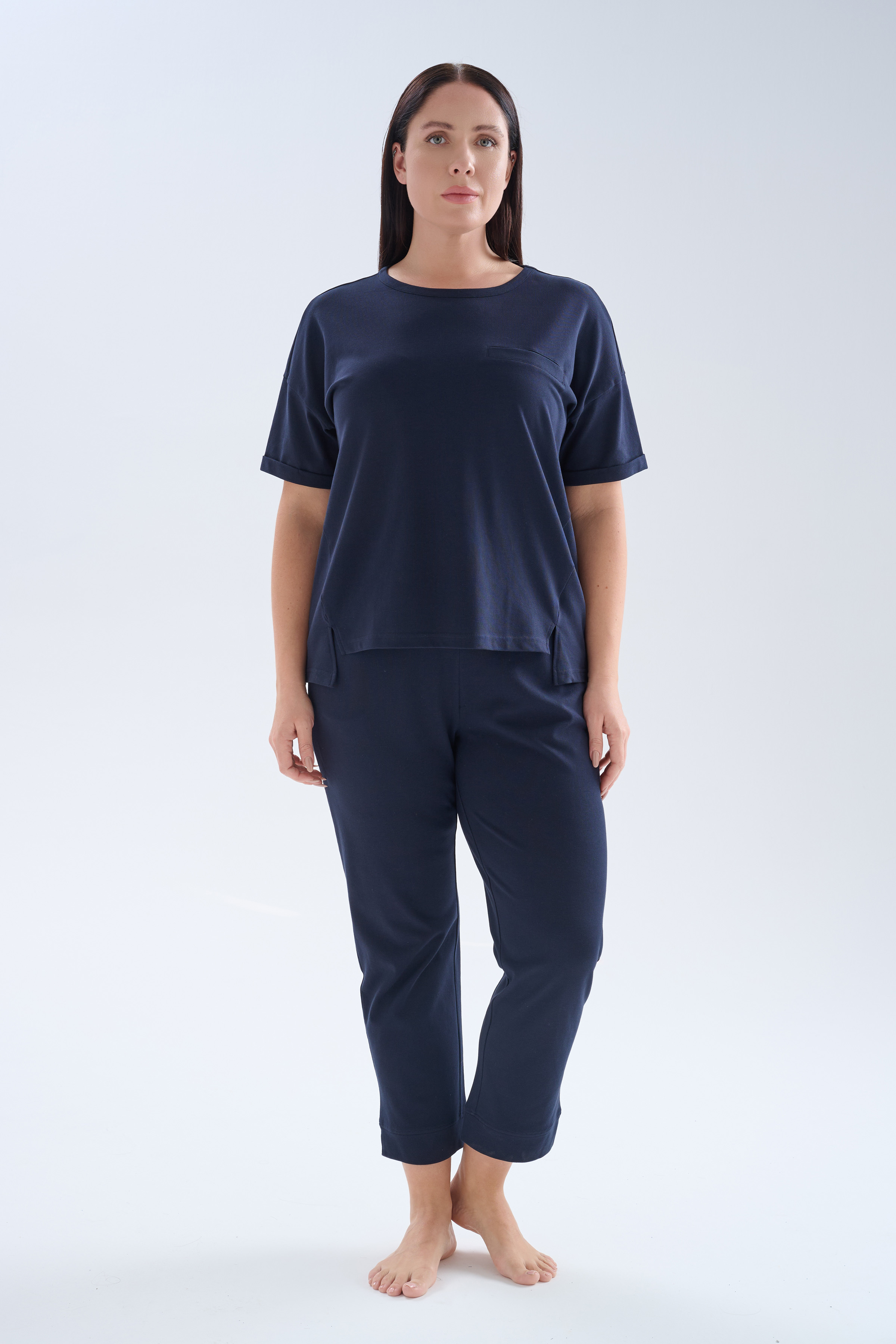 Lacivert Kadın Büyük Beden Pamuklu Pique İkili Takım - 70224