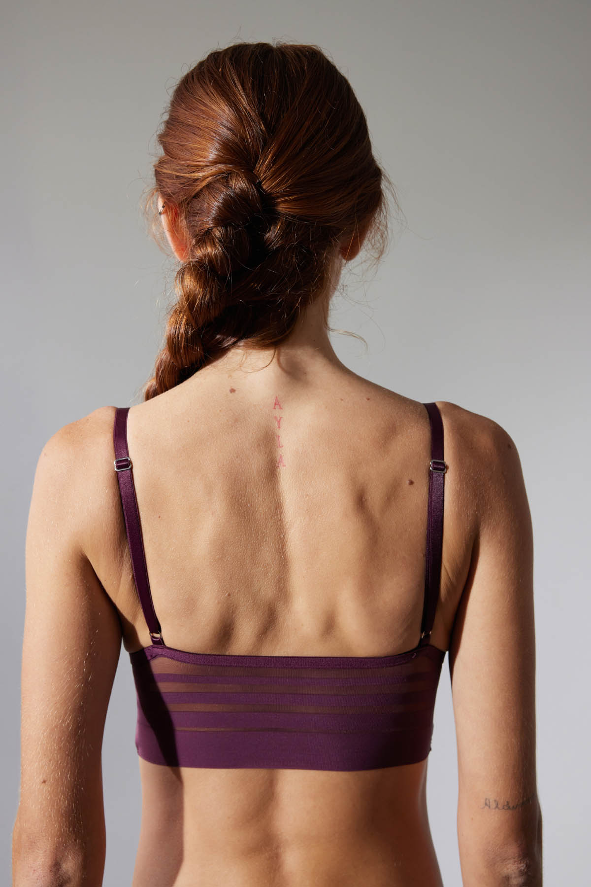 Mürdüm Kadın Çizgili Tül Balensiz Bralet - 27291-STY