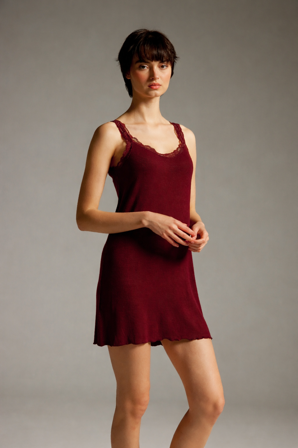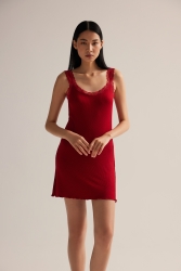 Bordo Kadın Dantel Detaylı Gecelik - 60194