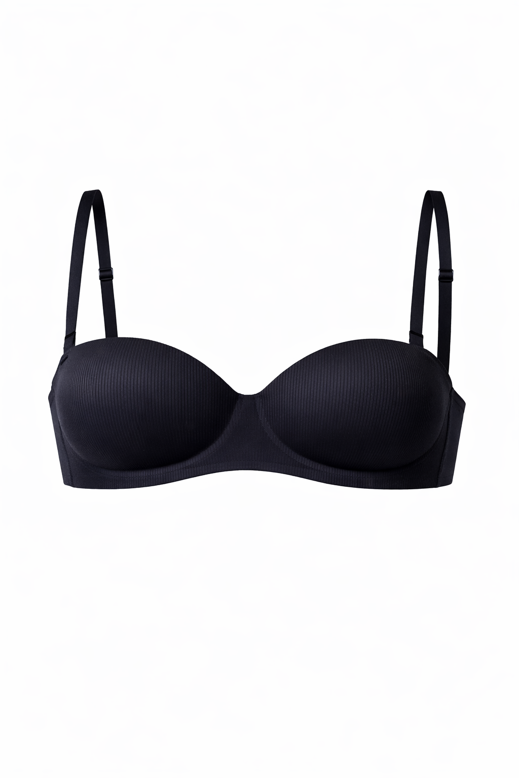 Siyah Kadın Dikişsiz Straplez Yarı Destekli Sütyen - 62279