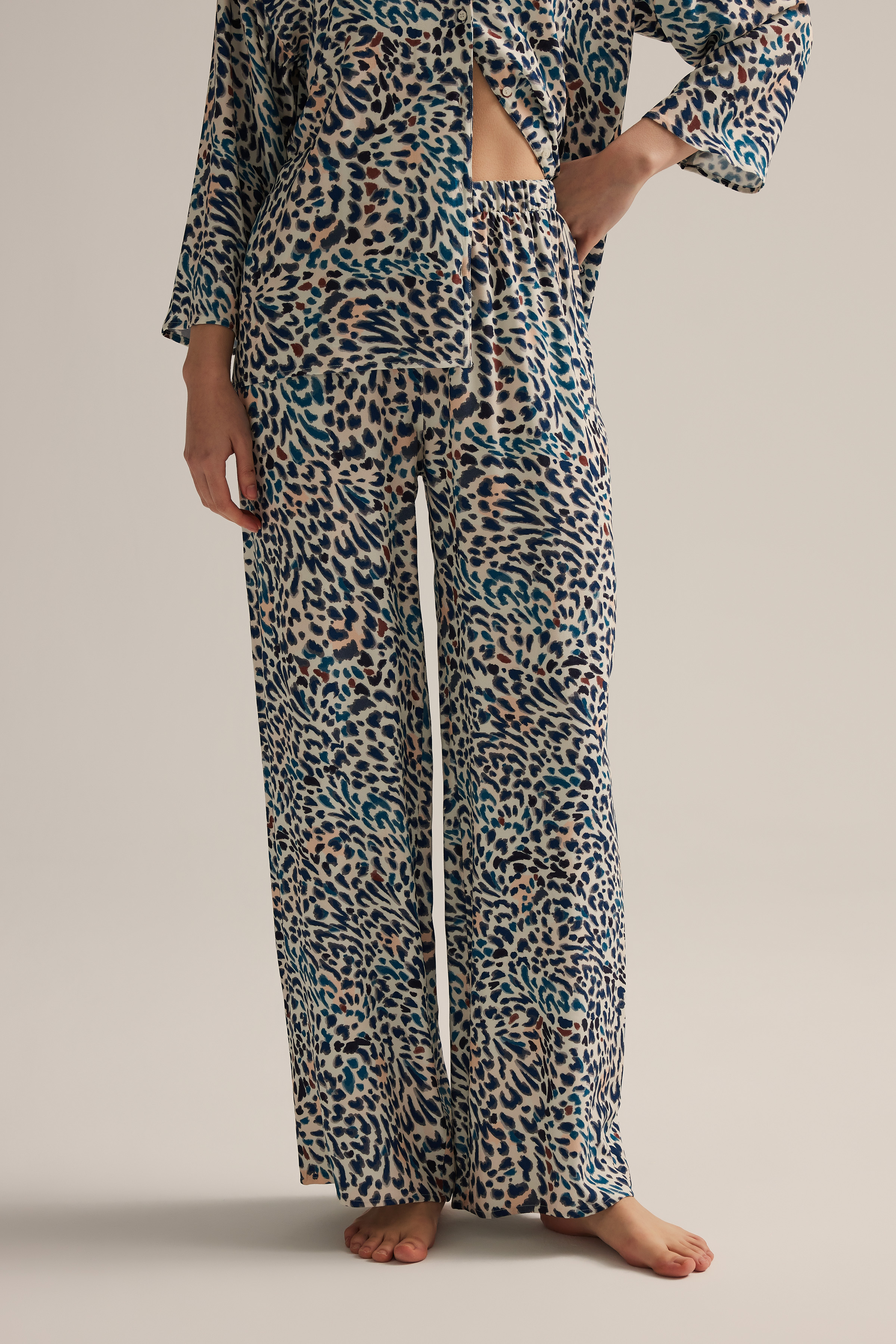 Mavi Leopar Desenli Kadın Dokuma Pantolon - 62195-PNT