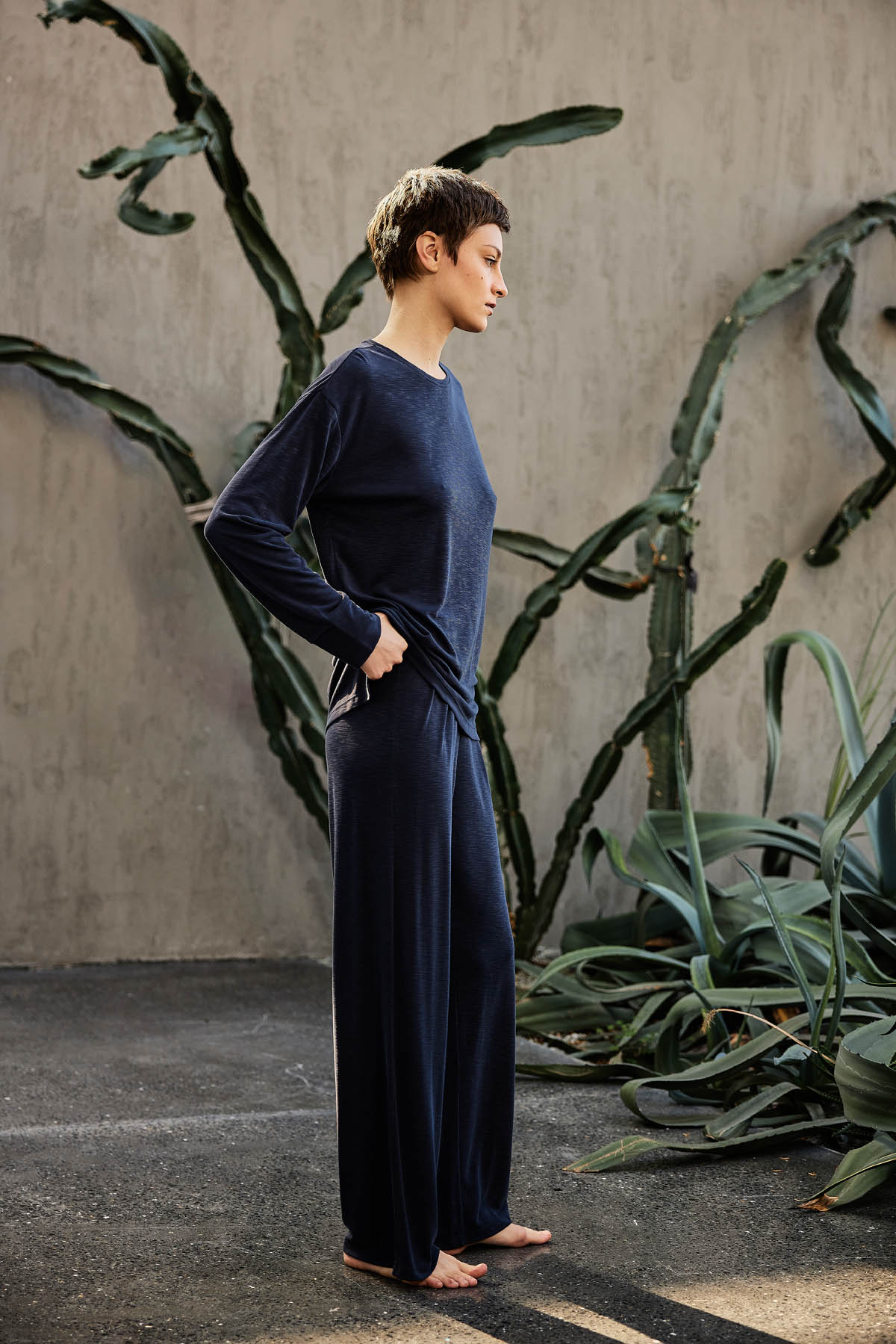 Lacivert Kadın Flamlı Modal Uzun Kollu T-shirt Pantolon Takım - 40414