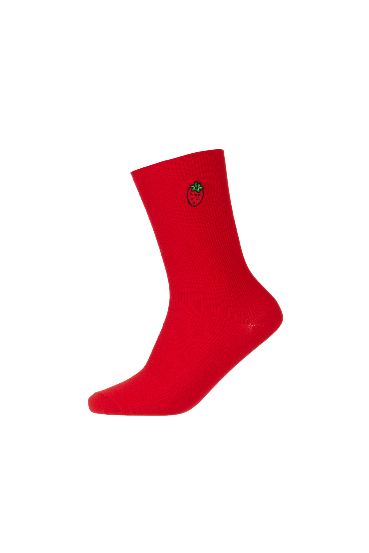 Kırmızı Kadın Meyve Nakışlı Soket Çorap - 45706