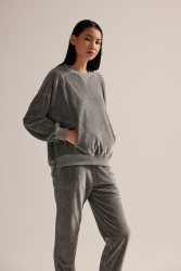 Gri Melanj Kadın Modal Kadife Cep Detaylı Sweatshirt - 62740-SWT