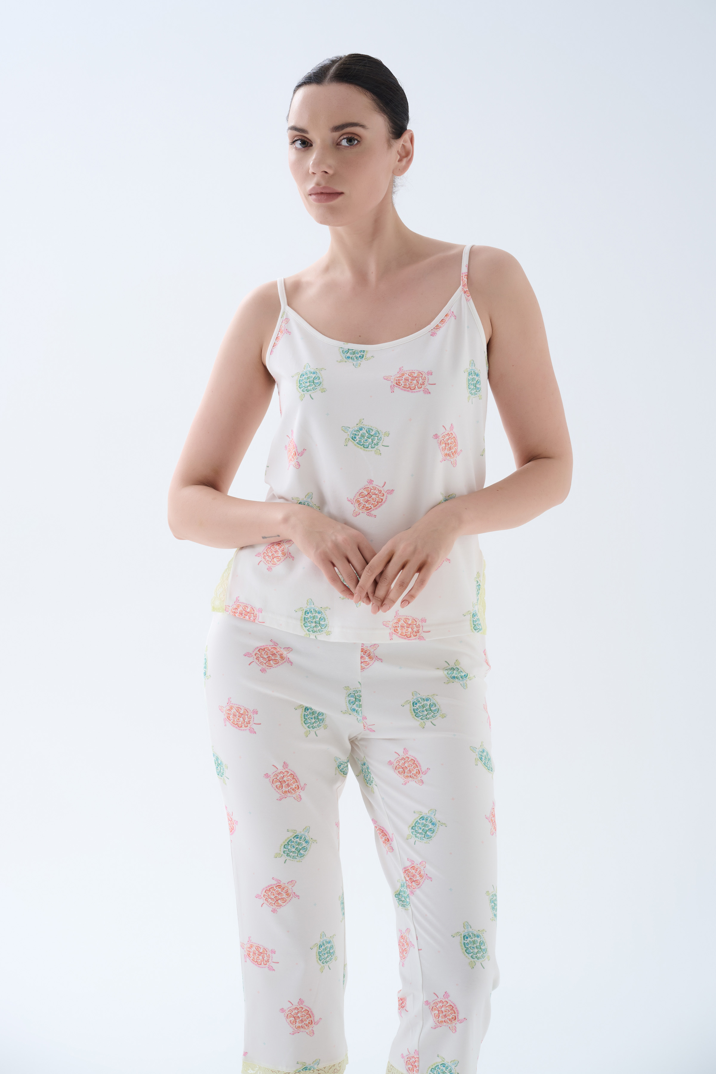 Rengarenk Baskılı Kadın Pamuklu Ayarlanır İp Askılı Dantel Detaylı Atlet Pijama Üstü - 70130-ATL