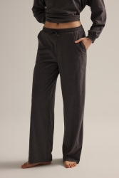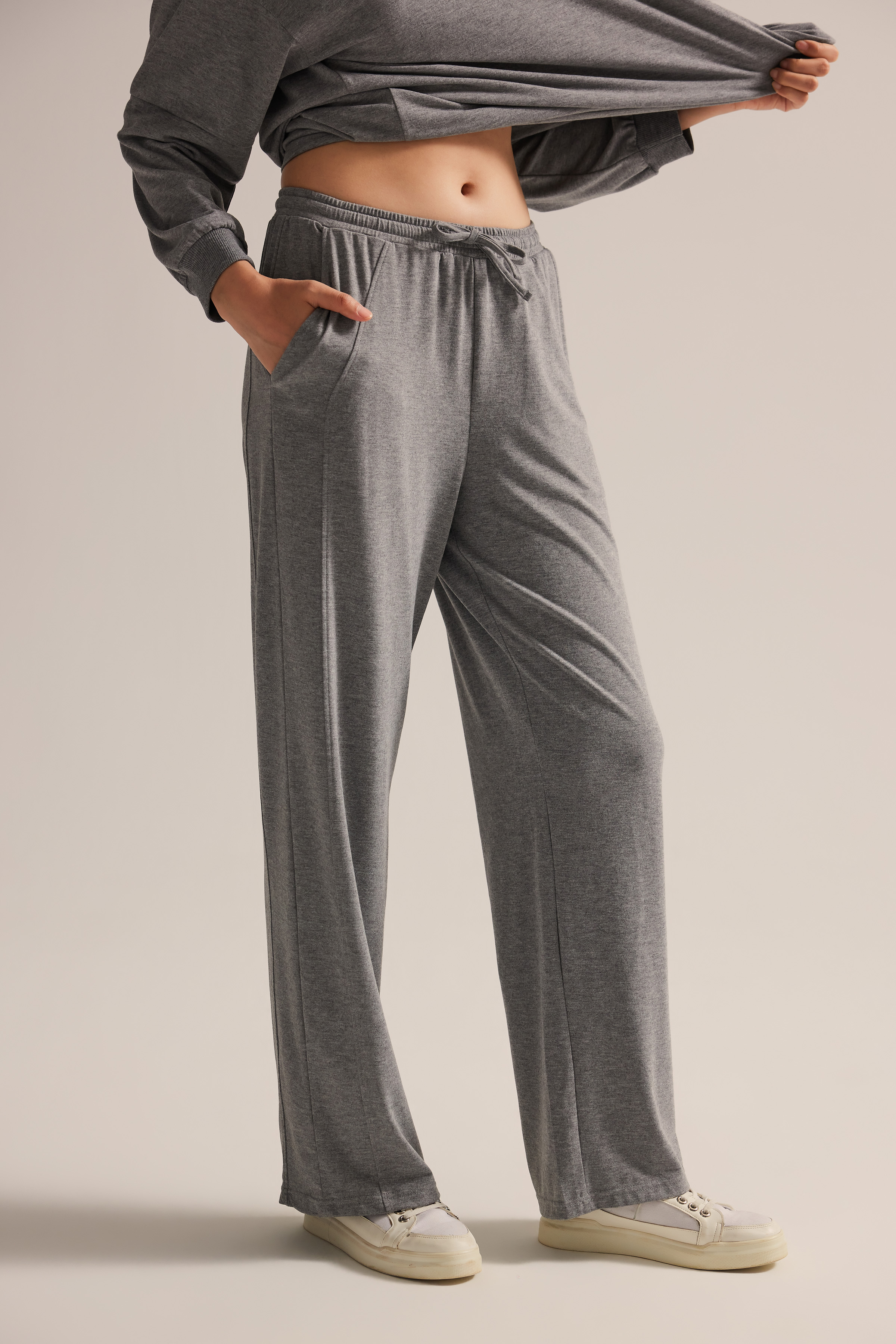 Antrasit Melanj Kadın Pamuklu Cepli Uzun Pijama Altı - 62341-PNT