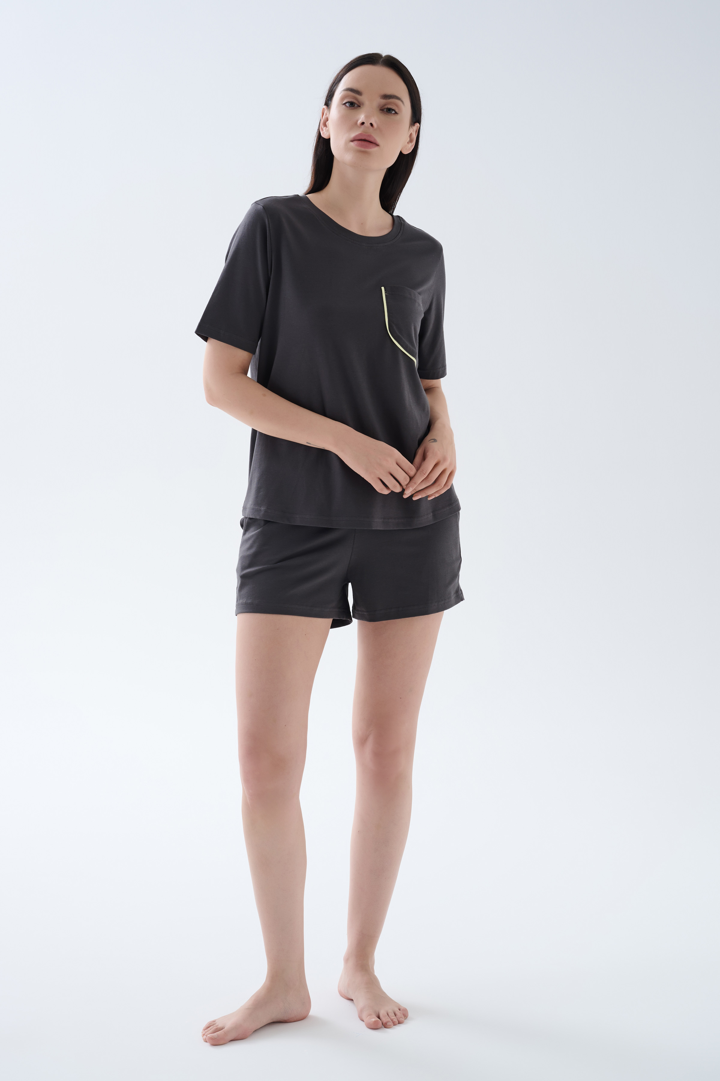 Antrasit Kadın Pamuklu Kısa Kollu Şortlu Pijama Takımı - 70321