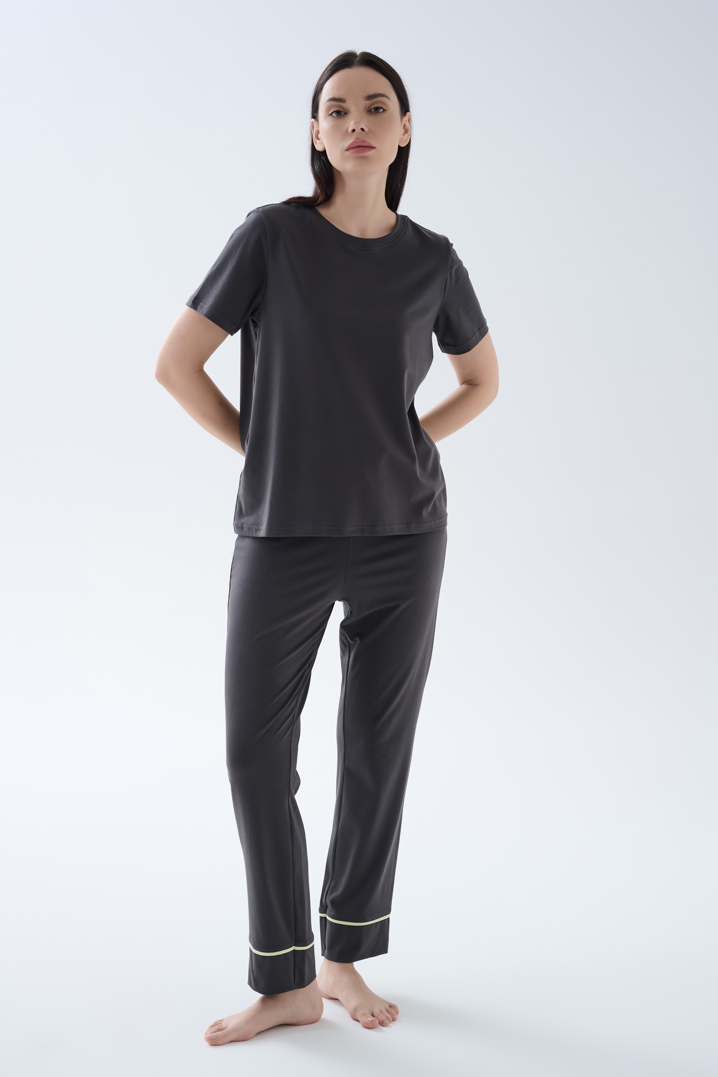 Antrasit Kadın Pamuklu Kısa Kollu Uzun Pijama Takımı - 70320