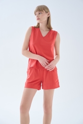 Kırmızı Kadın Pamuklu Pique V Yaka T-shirt - 70568-ATL