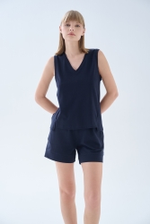 Hafif ve nefes alabilen yapısıyla konfor sunan bu V yaka t-shirt, lacivert tonu ve sade tasarımıyla günlük stilin vazgeçilmez parçalarından biri olur.