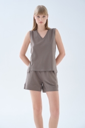 Kadın Pamuklu Pique V Yaka T-shirt
