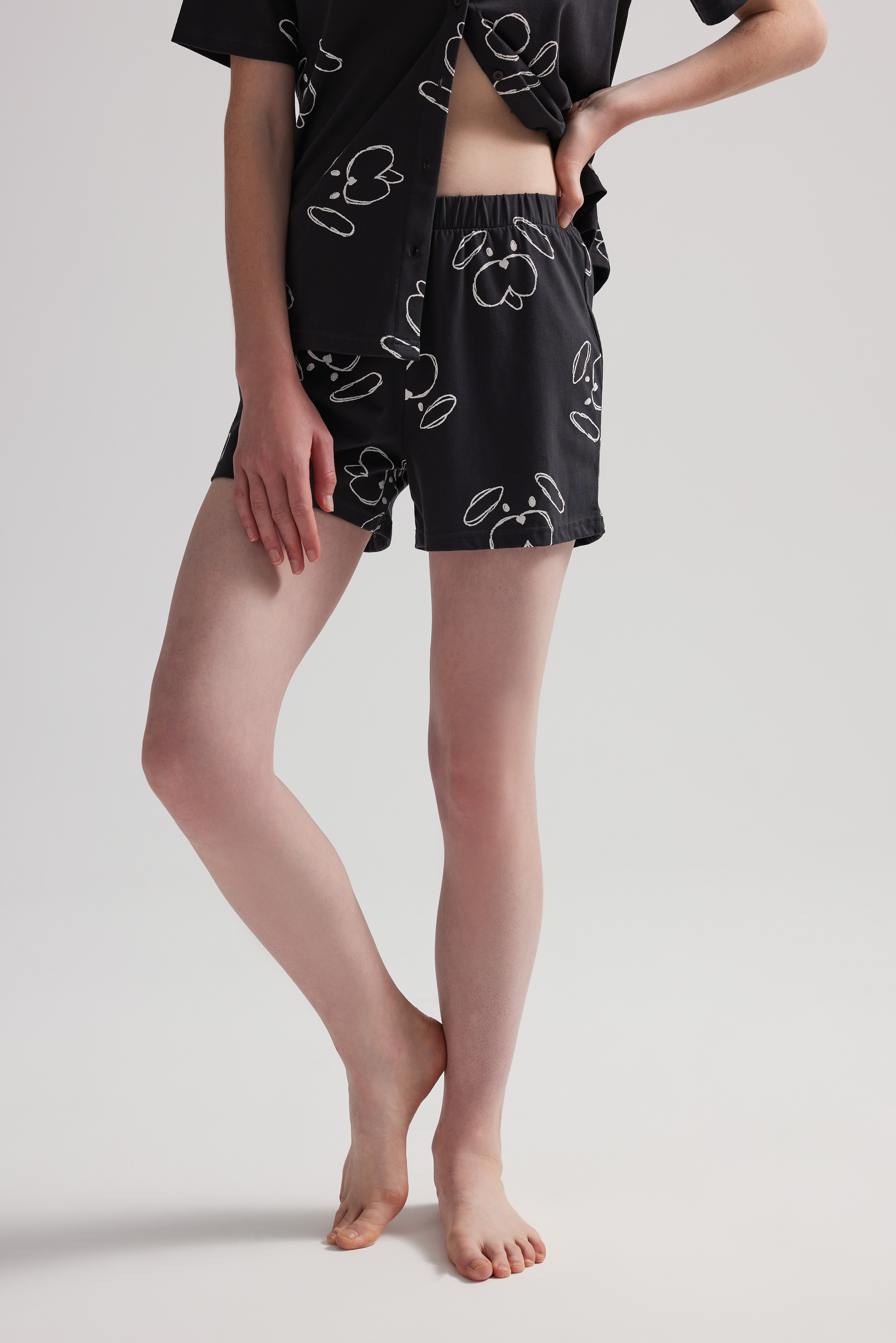 Ekru Baskılı Kadın Pamuklu Şort Pijama Altı - 62329-SRT