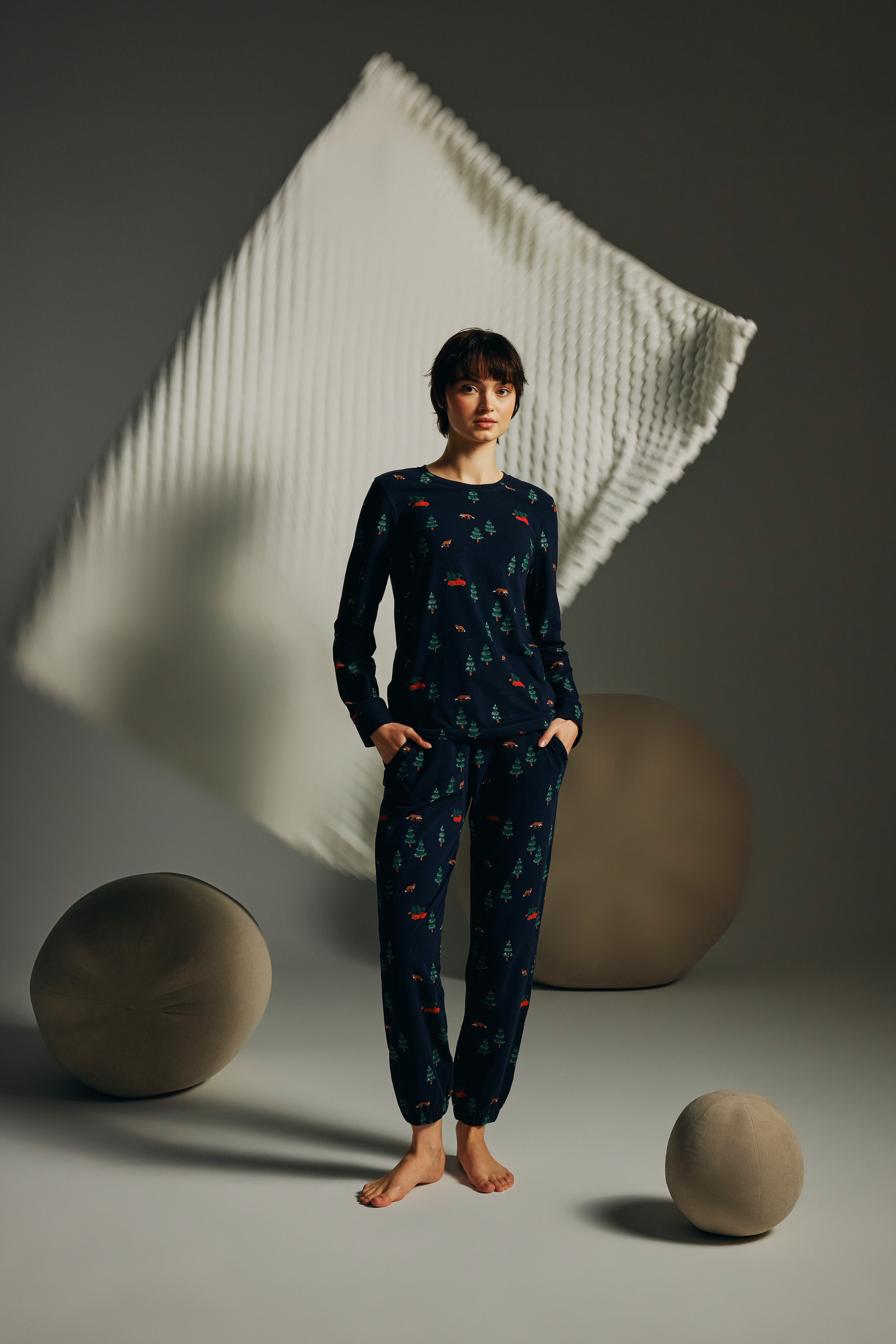 Kadın Pamuklu Uzun Kollu Pijama Takımı