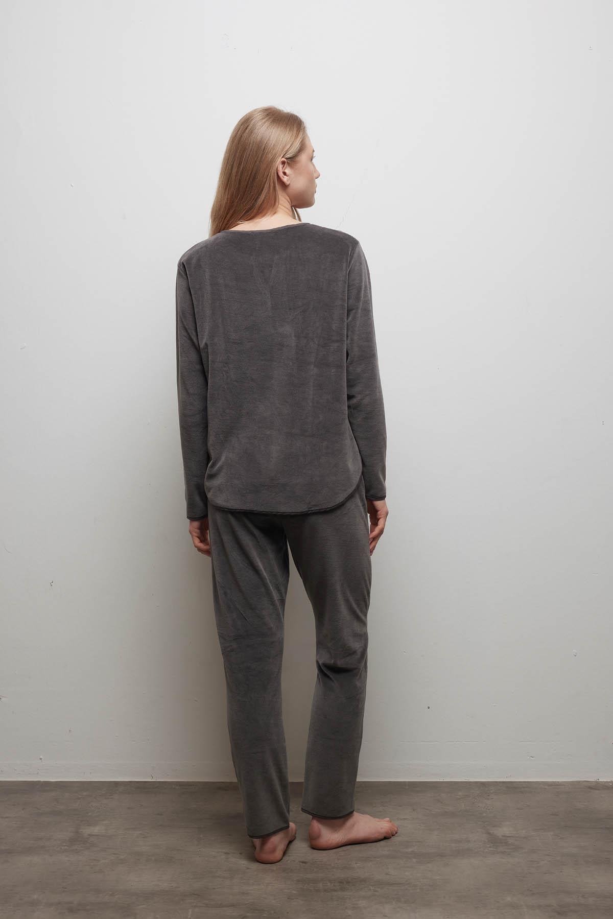 Antrasit Kadın Pamuklu V Yaka Uzun Kollu Eşofman Üstü - 40115-TST