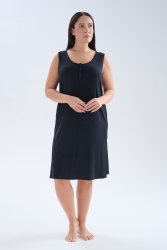 Kadın Plus Size Modal Kaşkorse Kolsuz Yırtmaçlı Gecelik