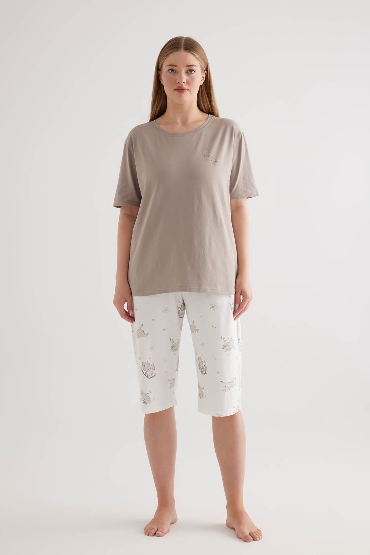 Kadın Plus Size Pamuklu Kapri Pijama Altı