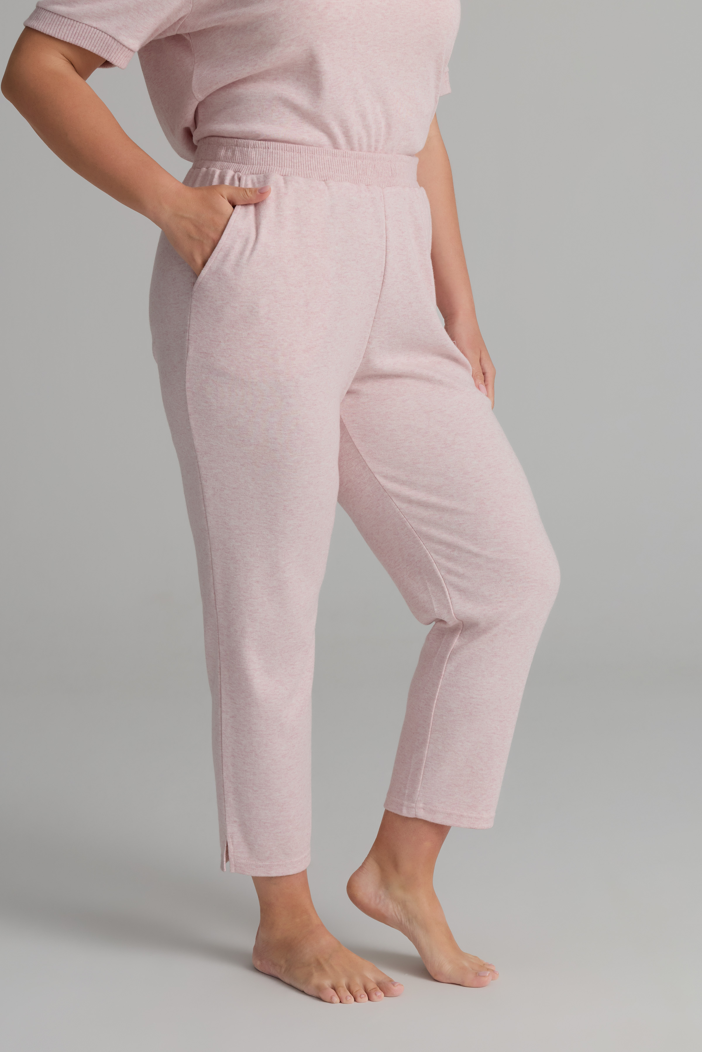 Pembe Melanj Kadın Plus Size Pamuklu Örme Pantolon - 62733-PNT