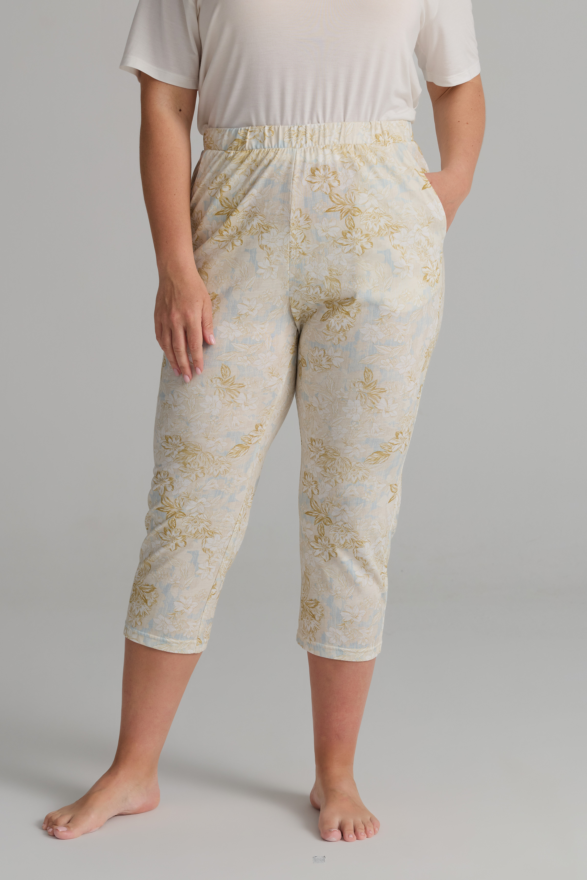 Hardal Çiçek Desenli Kadın Plus Size Viskon Uzun Pijama Altı - 62353-PNT