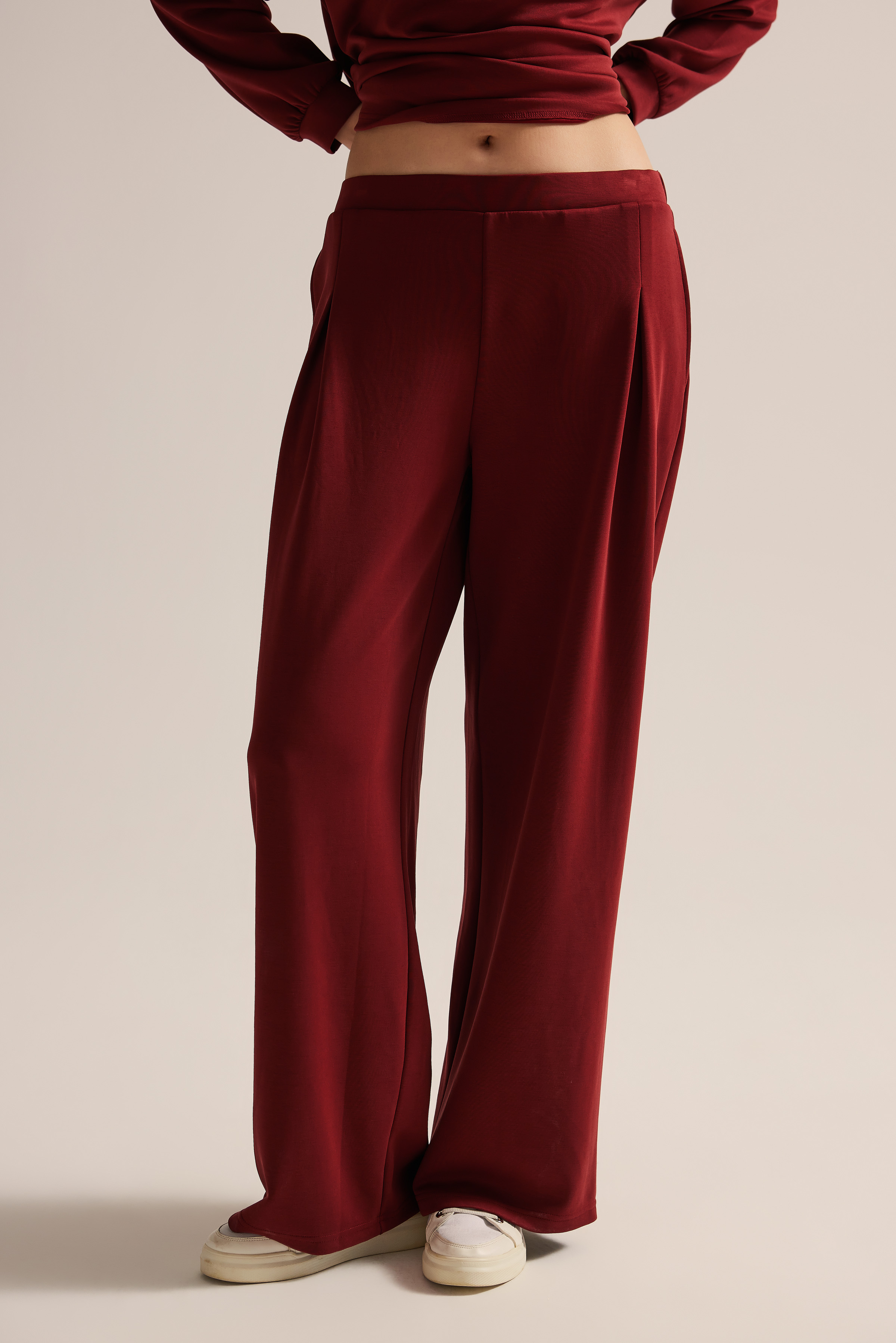 Bordo Kadın Soft Touch Cepli Uzun Pantolon - 62622