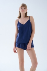 Kadın Vegan Dokuma İp Askılı V Yaka Volan Detaylı Atlet