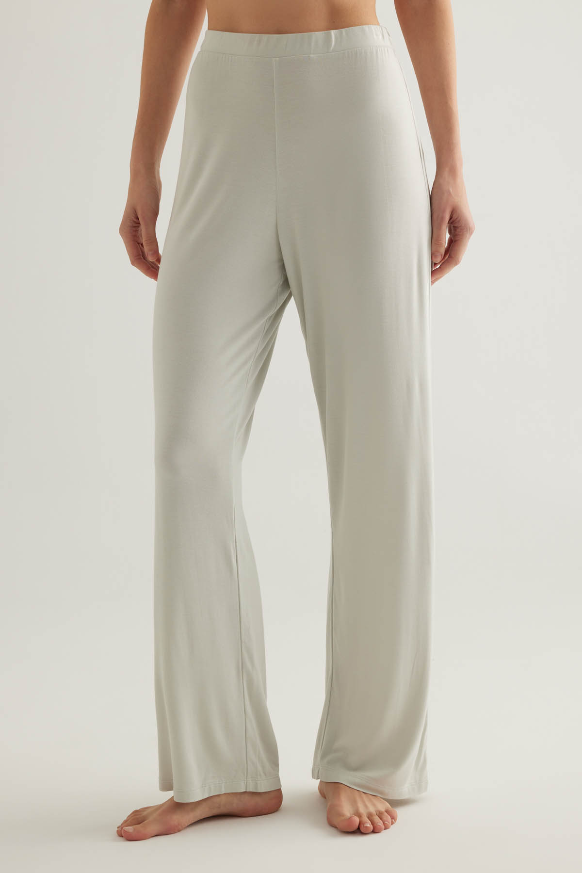 Viskon karışımlı kumaştan üretilmiş t-shirt. Bisiklet yaka ve kısa kollu. Uzun pijama altı.