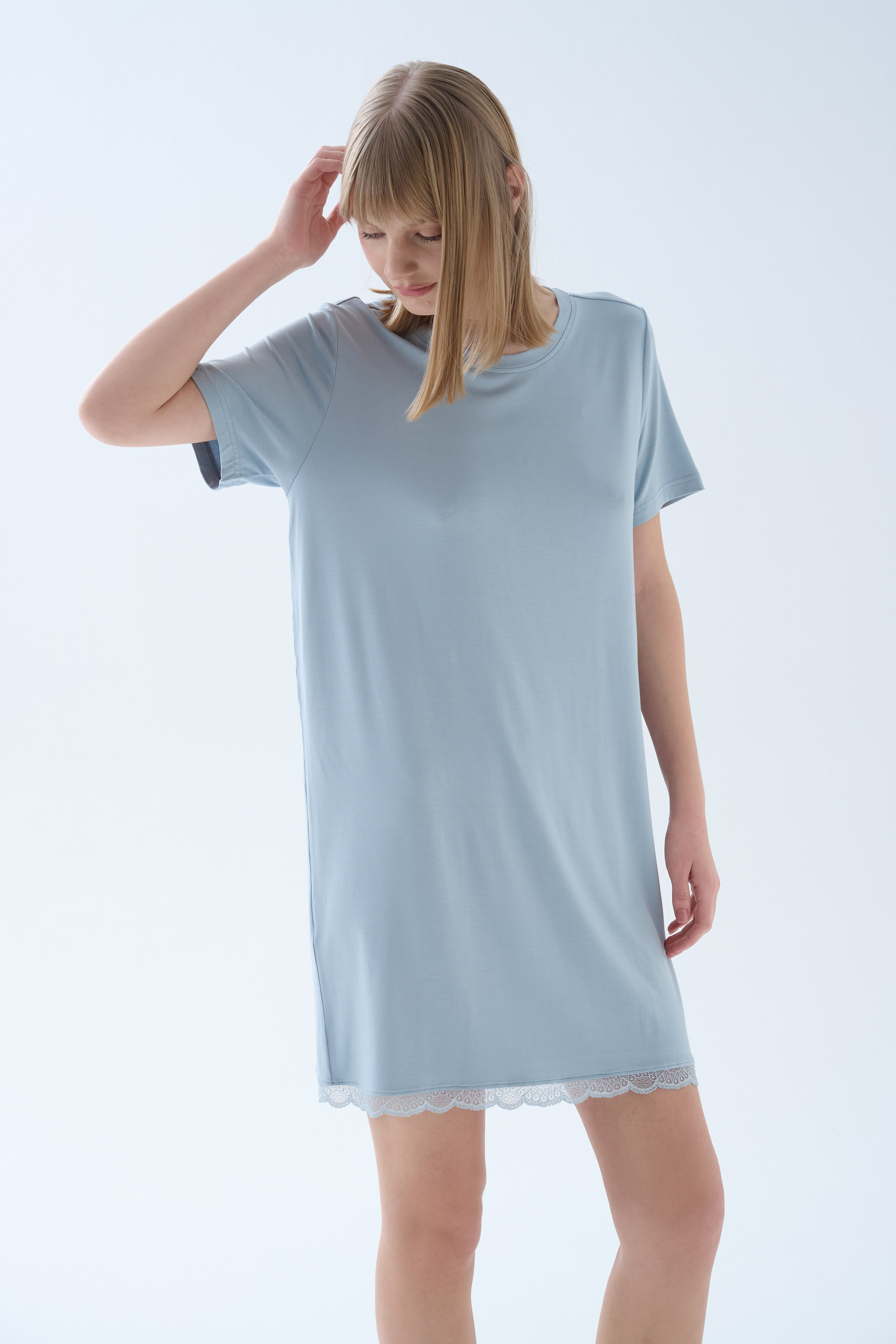 Mavi Kadın Viskoz Kısa Kollu Dantel Detaylı Gecelik - 70317