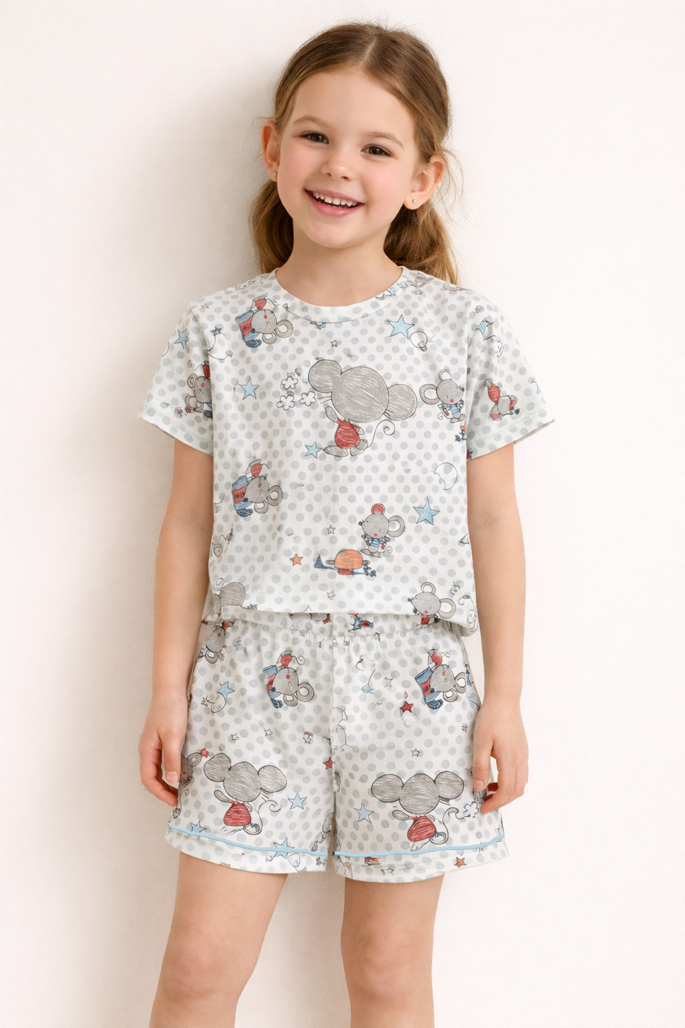 Kız Çocuk Pamuklu Kısa Kollu Şortlu Pijama Takımı