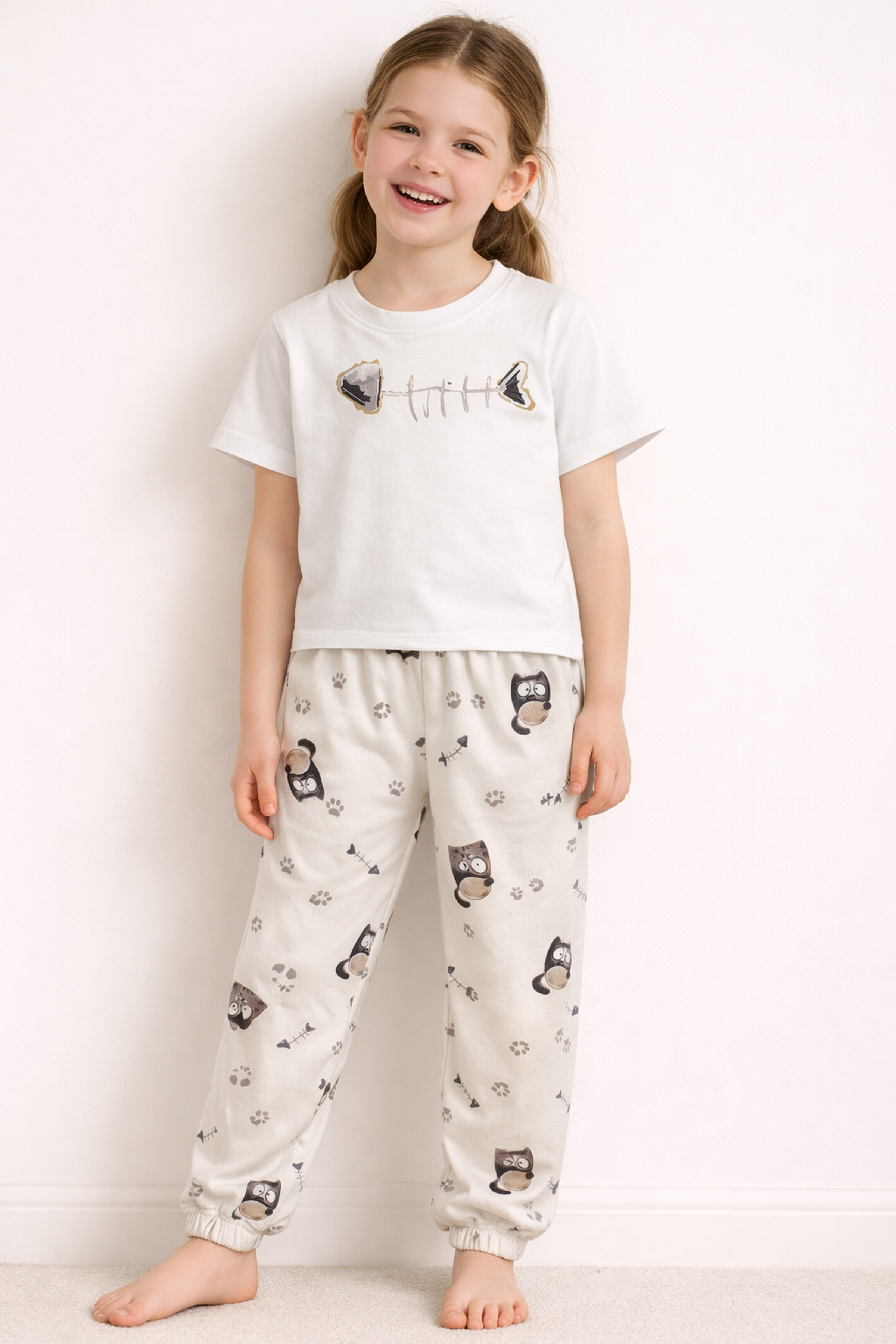 Kız Çocuk Pamuklu Kısa Kollu Uzun Pijama Takımı
