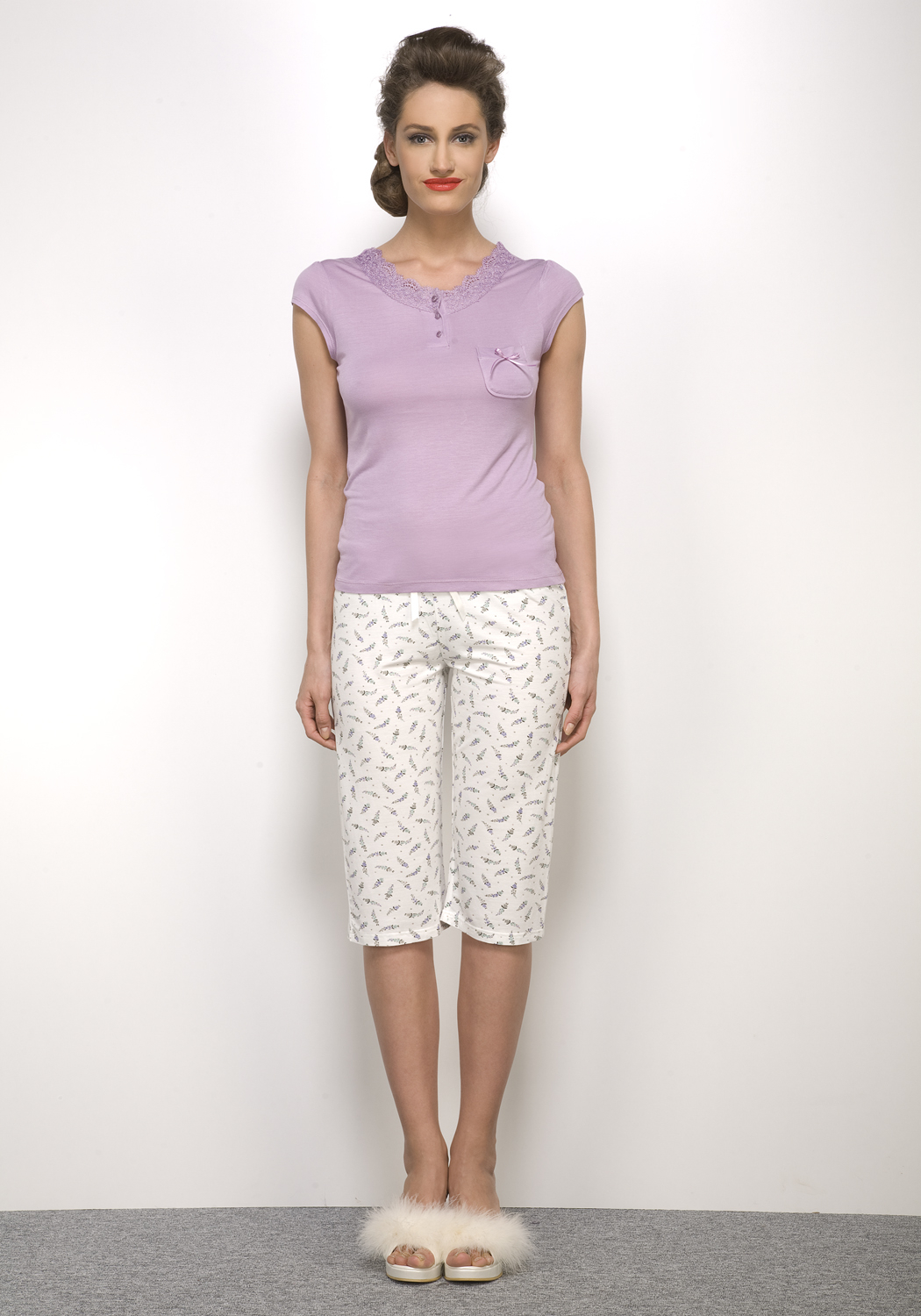 Lila Lamino Kadın Kapri Pijama Takımı - 2685